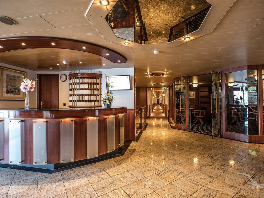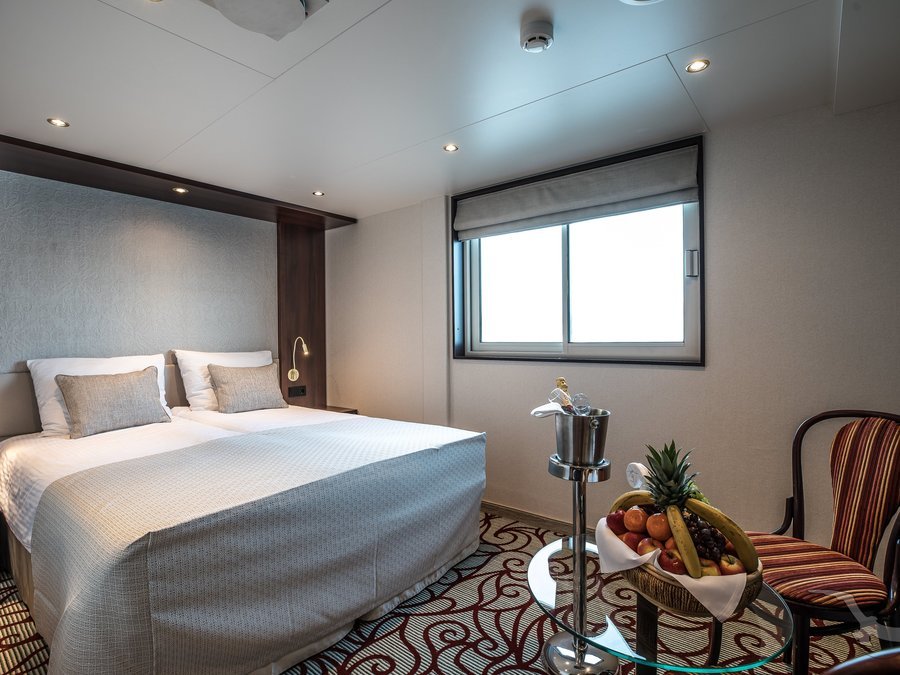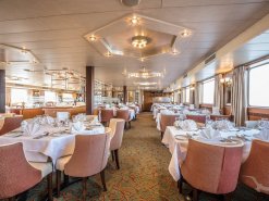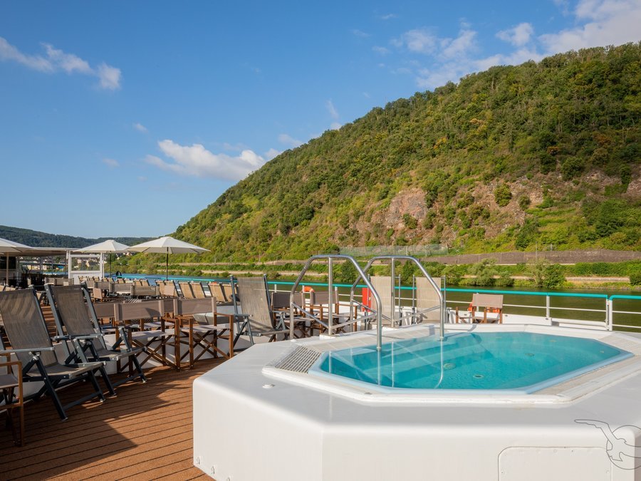 Das elegante, vollklimatisierte Schiff der Komfortklasse ist für einen erholsamen und gepflegten Urlaub Ihr richtiges Zuhause. Die freundliche, europäische Crew umsorgt und verwöhnt Sie. Vom großen Sonnendeck können Sie die idyllische Landschaft beobachten. Unser Schiff für spezielle Routen auf Rhein und Mosel. 3 Passagierdecks, elegantes Panorma-Restaurant (eine Tischzeit), behagliche Panorama-Lounge mit gemütlicher Bar, Foyer mit Rezeption/Souveniershop, Treppenlift zum Restaurant (nur über Rubydeck zu erreichen), Wäschereiservice, Sonnendeck mit Liegestühlen und Gartenmöbeln sowie Schattenplätzen, Pool, WLAN kostenpflichtig. Alle Kabinen liegen außen und sind komfortabel und geschmackvoll eingerichtet. Die Kabinen auf dem Oberdeck mit französischem Balkon, auf dem Hauptdeck können die Panoramafenster zur Seite hin aufgeschoben werden. Ausstattung: Dusche/WC, Fön, individuell regulierbare Klimaanlage, SAT-TV (Flachbildschirm), Bordradio, Minibar, Safe, Telefon, kleine Tageszeitung, Bordspannung 230 V Wechselstrom. Die Betten lassen sich wahlweise als Doppel- oder Einzelbetten stellen.