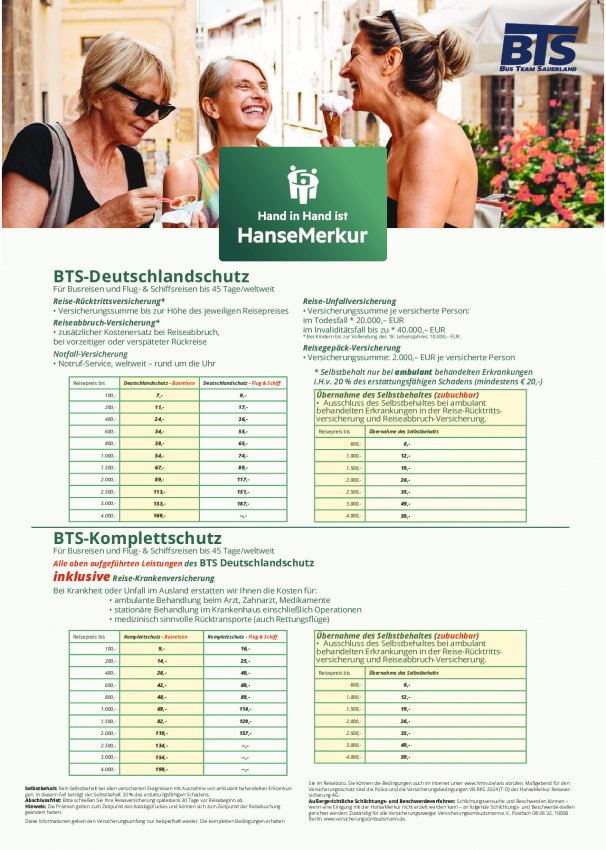 Mit unserem Partner HANSE-MERKUR Reiseversicherung AG aus Hamburg haben wir für Sie einen attraktiven Reiseschutz mit günstigen Prämien erarbeitet.